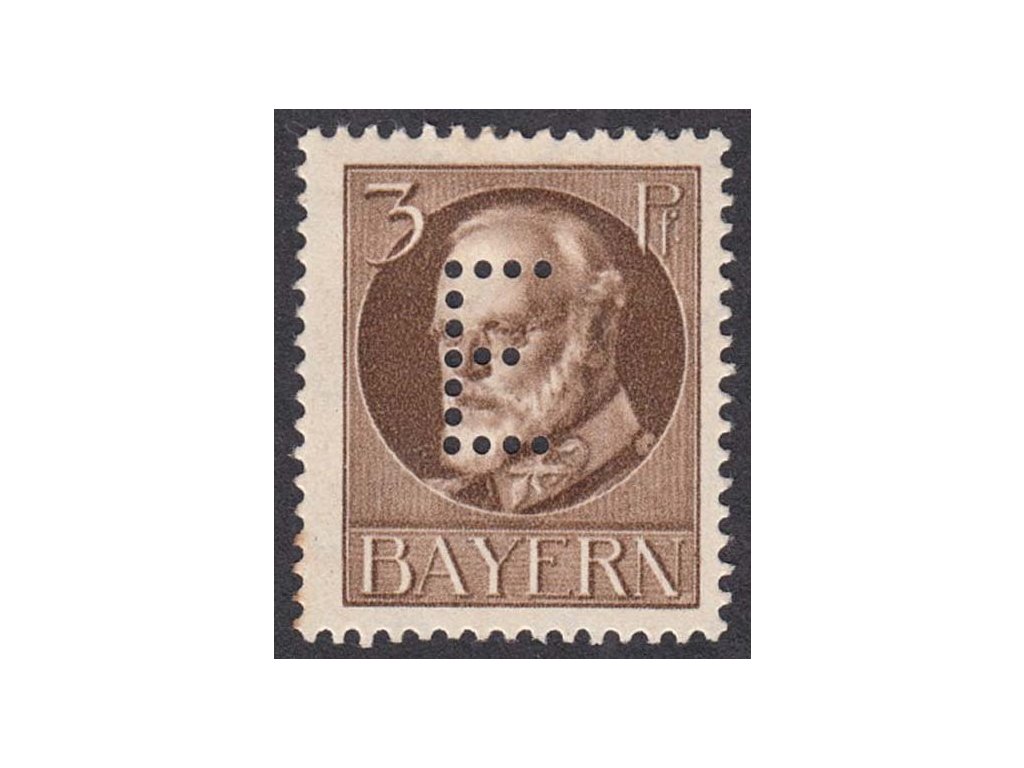 Poštovní známka, Bayern, 1914, 3 Pf služební, MiNr.12, * po nálepce, dv