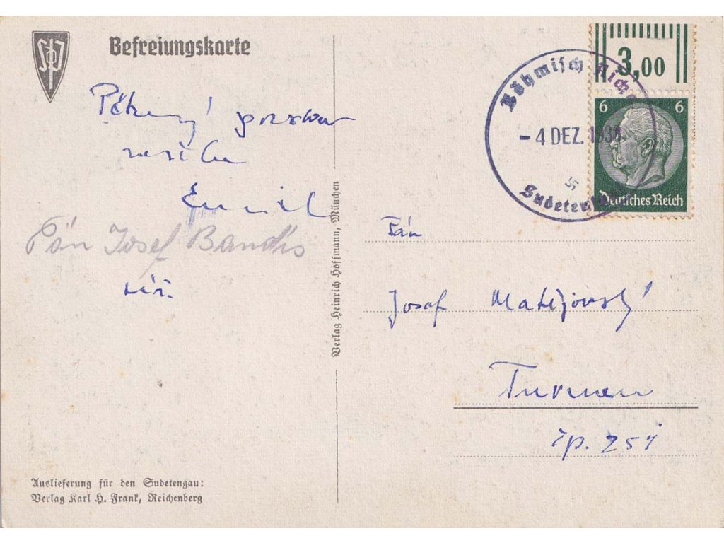 Böhmisch Aischa, 1939, propgandistická pohlednice Wir danken führer,