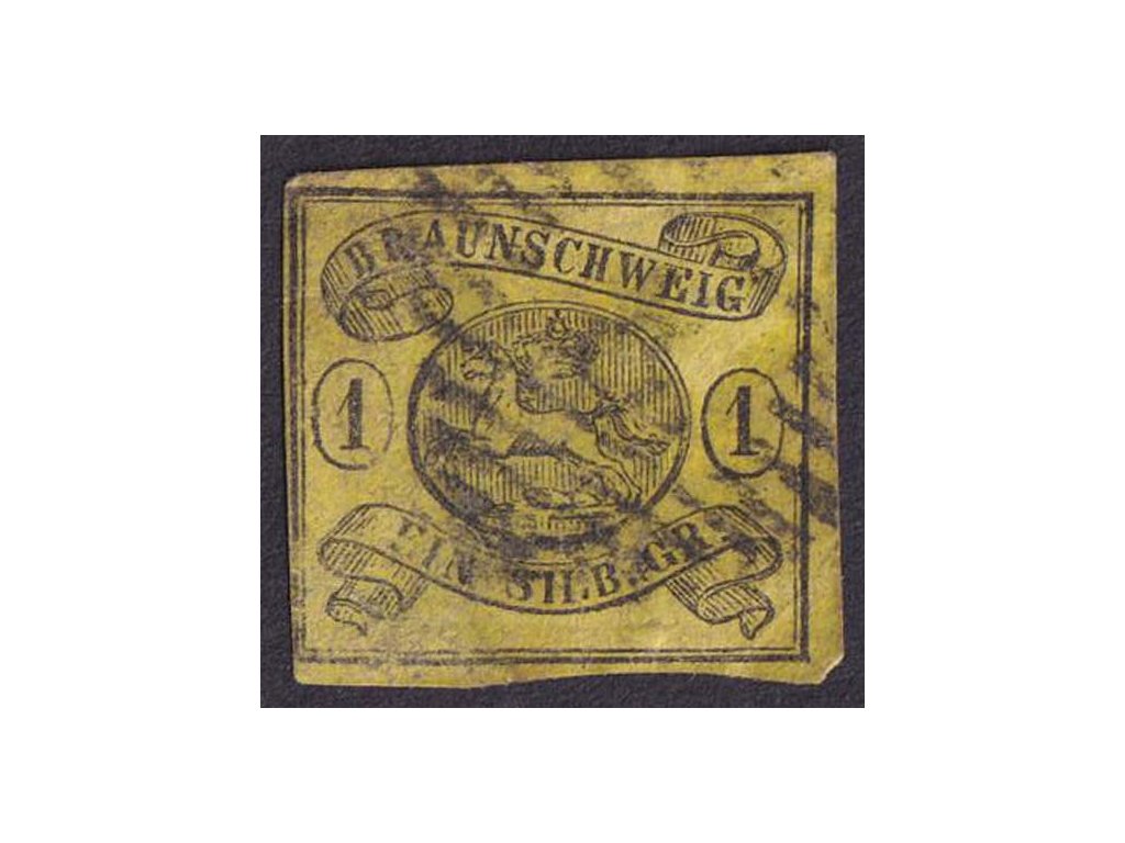 Braunschweig, 1853, 1 Sgr Znak, MiNr.6, razítkované, lom, horší jakost