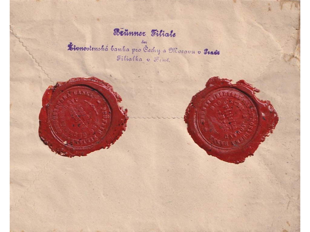 Poštovní celistvost, Brno-Město, cenný dopis zaslaný v roce 1893 do Letovic, lehká omačkání, stopy poštovního provozu