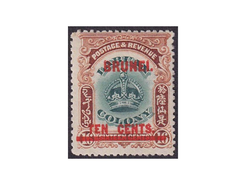 Poštovní známka, Brunei, 1906, 10C/16C přetisková známka, MiNr.8, těžká *