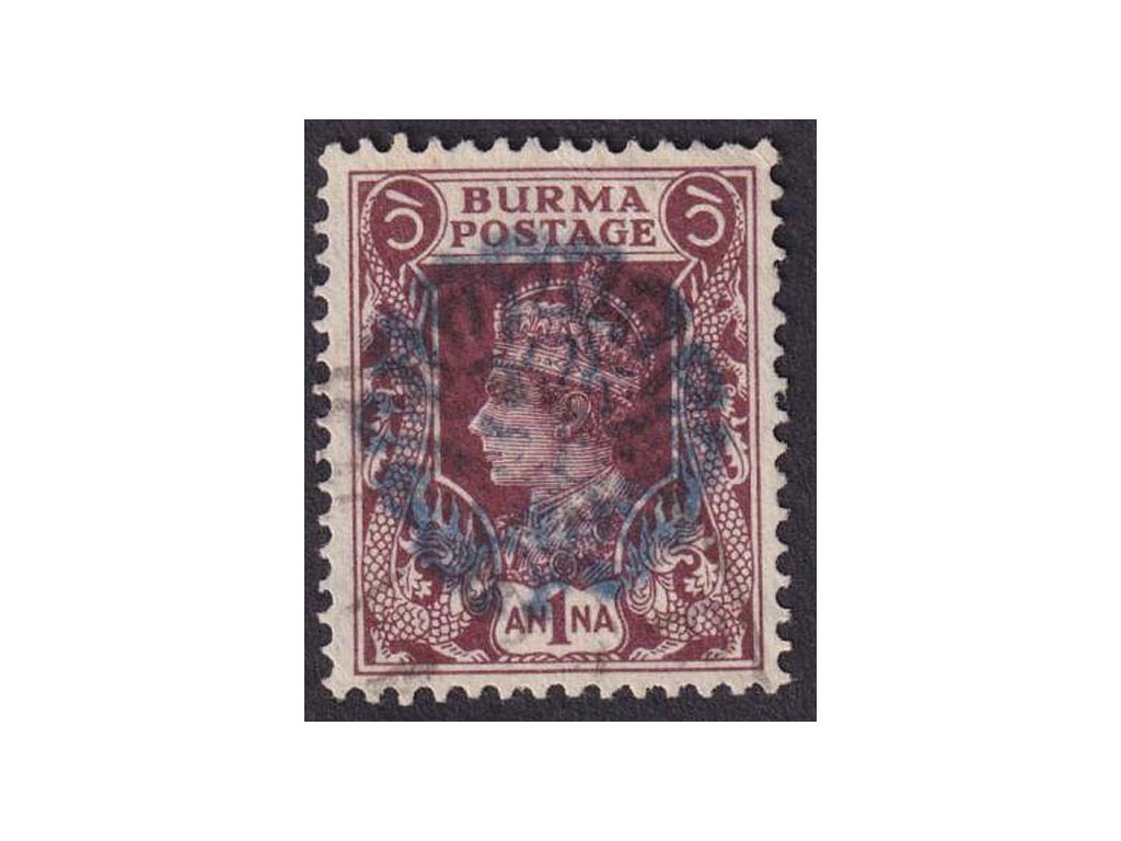 Poštovní známka, Burma, Japonská okupace, 1942, 1 A Henzada, MiNr.37, razítkované