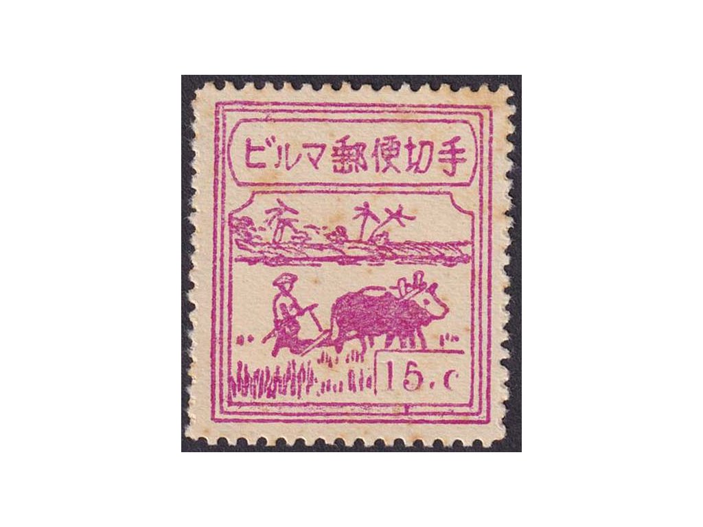 Poštovní známka, Burma, Japonská okupace, 1943, 15 C Oráč, MiNr.83, (*) , skvrnky - viz. foto