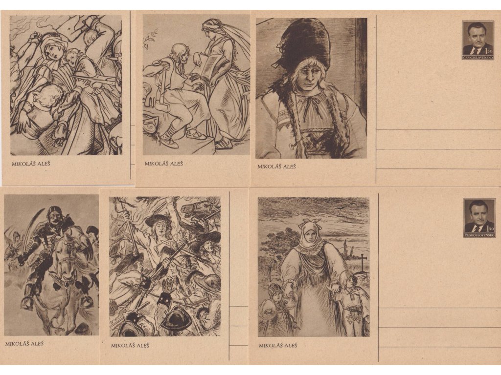 Poštovní dopisnice, CDV 108 (1-6) Mikoláš Aleš, kompletní sada, bezvadné