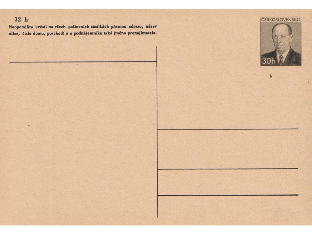 Poštovní dopisnice, CDV 112 Prezident A. Zápotocký, šedozelená barva, vzácné, světlejší odstín nažloutlého papíru, drobná výrobní nečistota v papíru, plná záruka pravosti