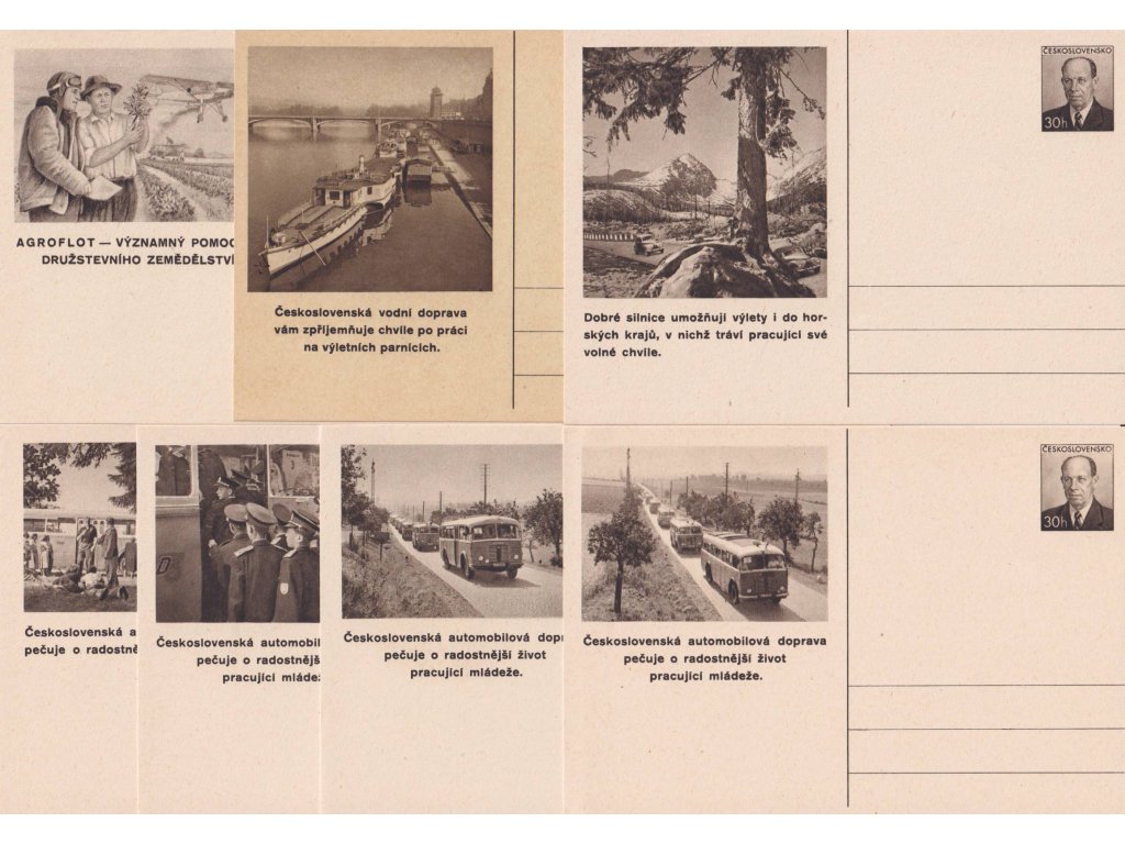 Poštovní dopisnice, CDV 116 (1-7) Osobní doprava a agroflot, kompletní sada, bezvadné, ilustrační foto