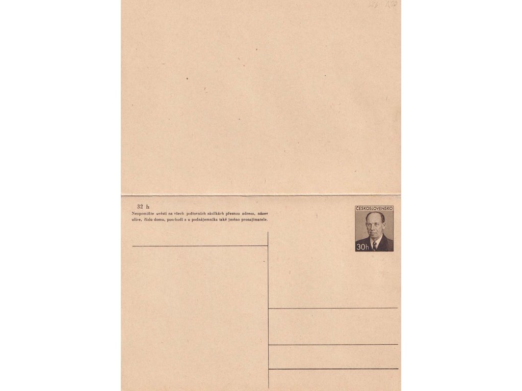 Poštovní dopisnice CDV 121 Prezident A. Zápotocký, dvojitá dopisnice, ilustrační foto