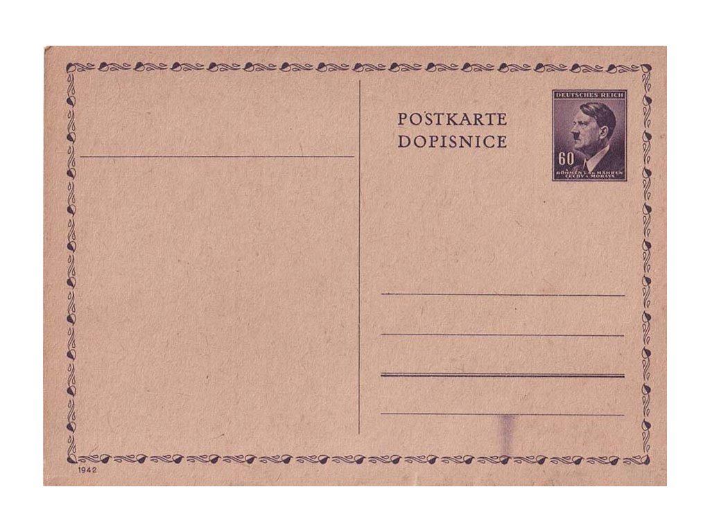 Dopisnice, CDV 16 Hitler, rozmazaná barva v adresní části, neprošlé, mírné natržení v dolní části a stopy stáří