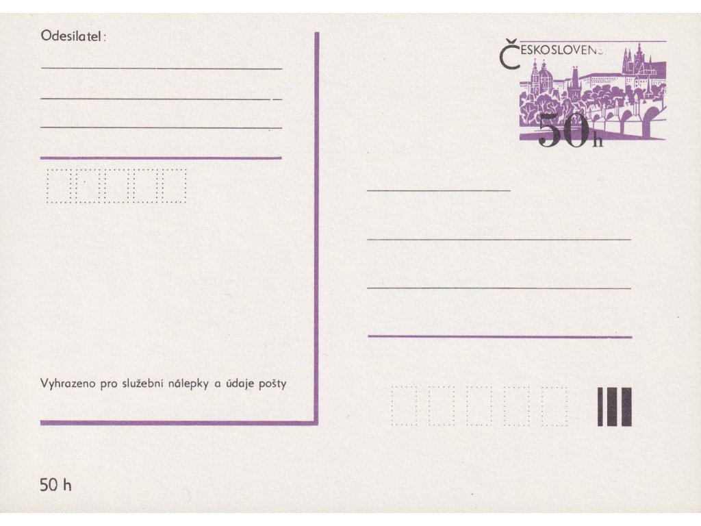 Poštovní dopisnice, CDV 192 Praha (II) nedotisk ČESKOSLOVEN (ČESKOSLOVENSKO)