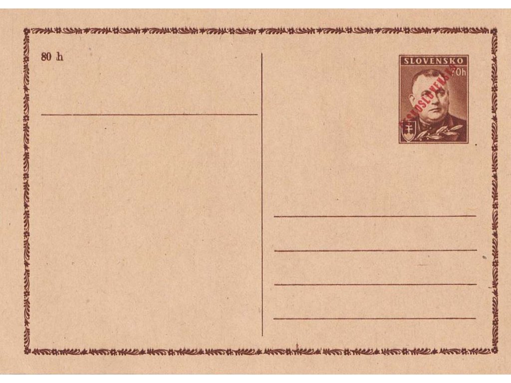 Poštovní dopisnice, CDV 77 Tiso s červeným přetiskem ČESKOSLOVENSKO