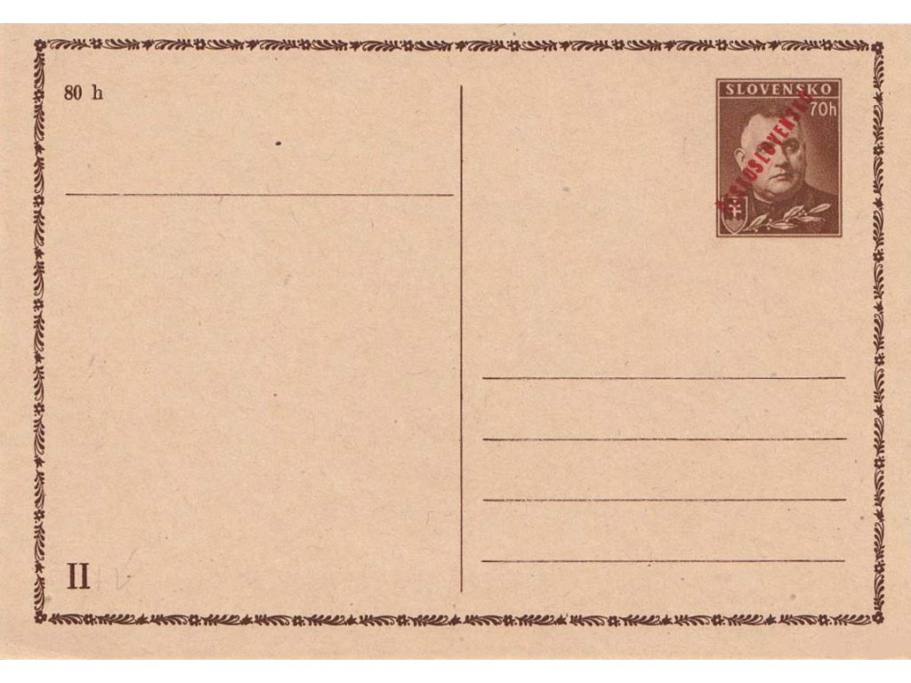 Poštovní dopisnice, CDV 78 Tiso s červeným přetiskem ČESKOSLOVENSKO, II. díl