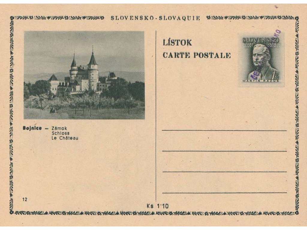 Poštovní dopisnice, CDV 79 (12) Rázus, Bojnice - Zámok