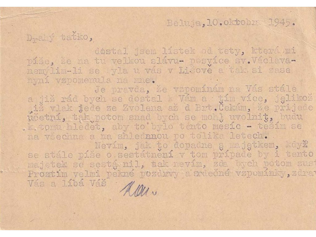 Poštovní dopisnice, CDV 81 (12) Hlinka (Drevený kríž na Detve), červený přetisk ČESKOSLOVENSKO, DR Beluja, zasl. v roce 1945 do Čech, skutečně prošlé, ohnuté růžky a stopy poštovního provozu - viz. foto