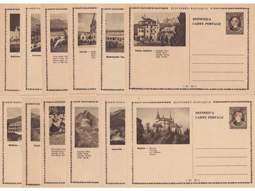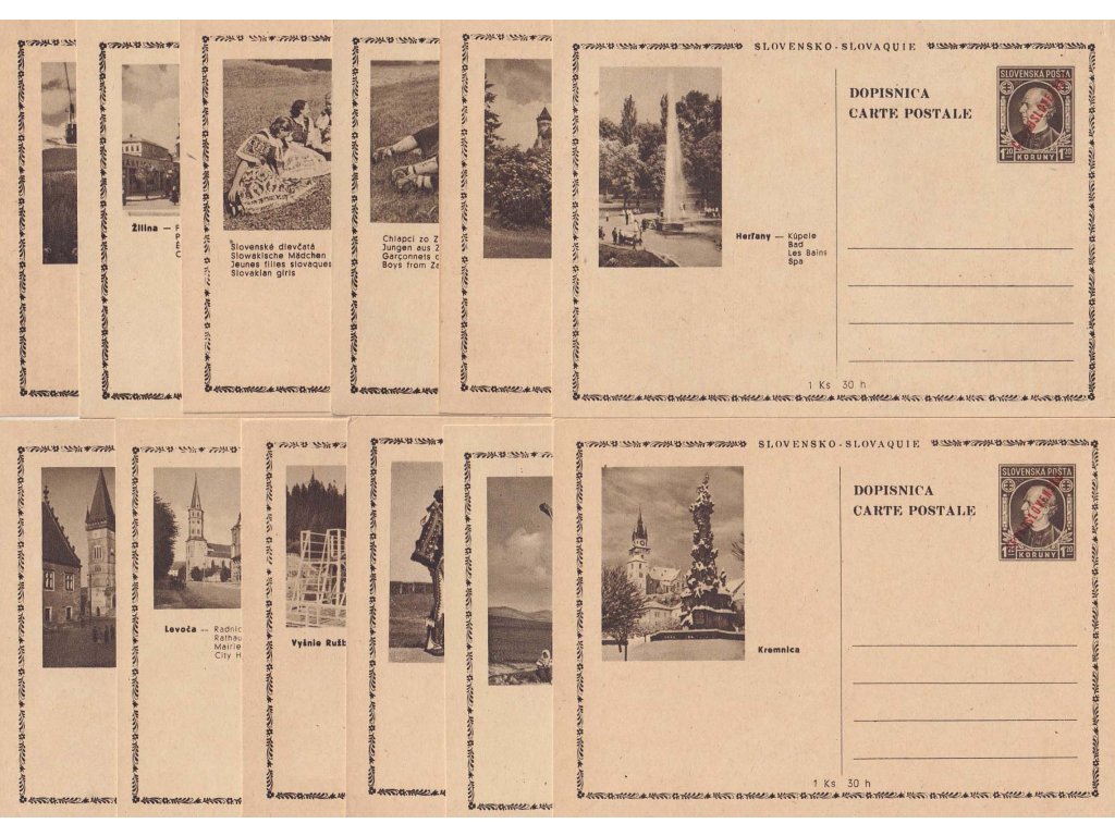 Poštovní dopisnice CDV 81 Hlinka, sada obrazových dopisnice, neprošlé, celkem 34 kusů, chybí pouze Nr.5, 28 a 29, u Nr.16 varianta A, vzácné, slušná standardní jakost