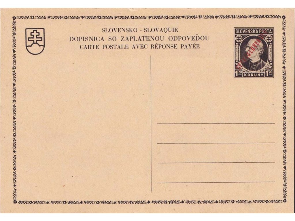 Poštovní dopisnice, CDV 82 Hlinka, I. díl z dvojité dopisnice