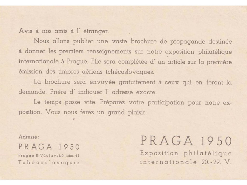 CDV 95 (3) A Výročí známky s přítiskem PRAGA 1950, francouzský text, dv
