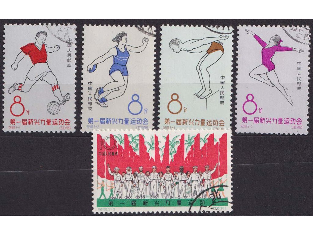 Poštovní známka, Čína, 1963, 8-10 F série Sport, MiNr.760-64, razítkované, původní lep bez * , hledané