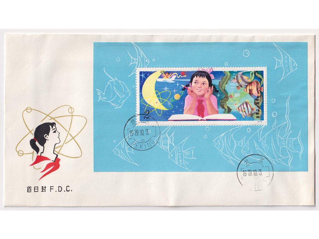 Pamětní obálka, Čína, 1979, MiNr.1527, FDC Bl.19 Studium mládeže, katalog Michel 2500 Eur, lehce zvlněno, slušný kus