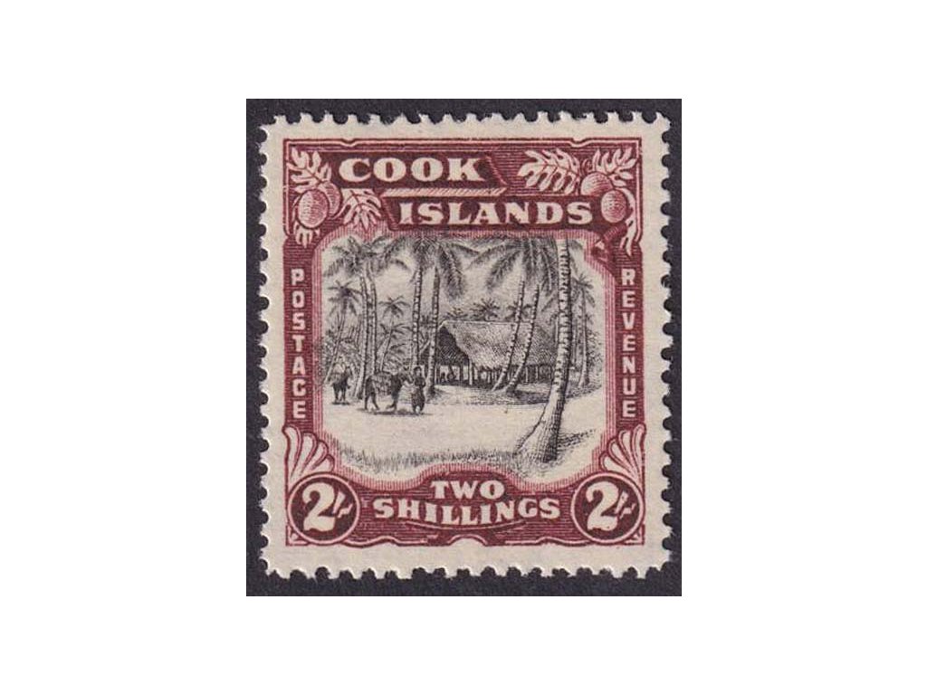 Poštovní známka, Cook Islands, 1938, 2 Sh Hütte, MiNr.59, * po nálepce