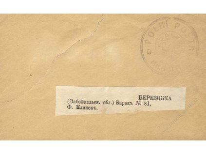 Polní pošta, ČSPP na Rusi, 1919, telegram Zabalkajské železnice použitý pro potřeby našich vojsk na Rusi, razítko Správa polní pošty, přeloženo, lehké otřepy a stopy stáří - viz. foto, zajímavý poštovně historický doklad