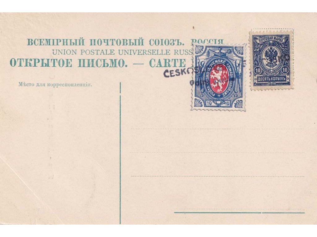 ČSPP na Rusi, 1920, pohlednice vyfr. smíšenou frank. známek, razítko ČSPP