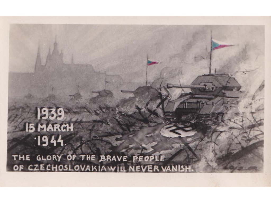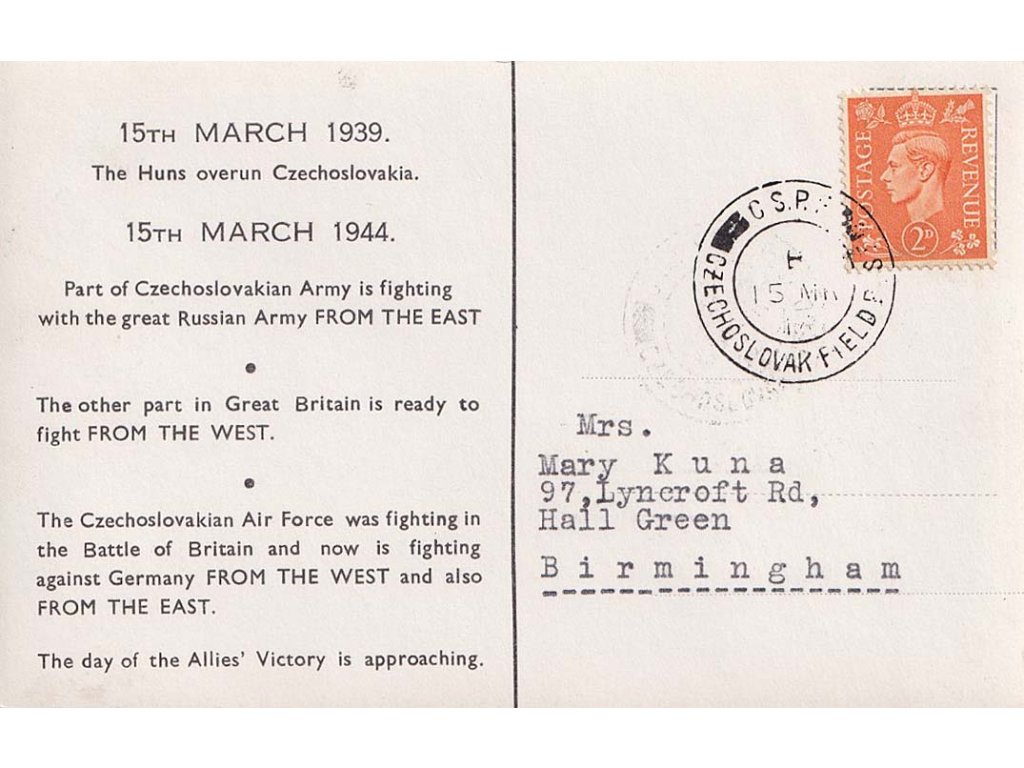 ČSPP v Anglii, 1944, propagační pohlednice, zasl. v Anglii