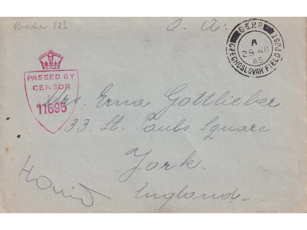 ČSPP v Anglii, 1945, dopis zaslaný mezi útvary, všechny náležitosti, cenzura,