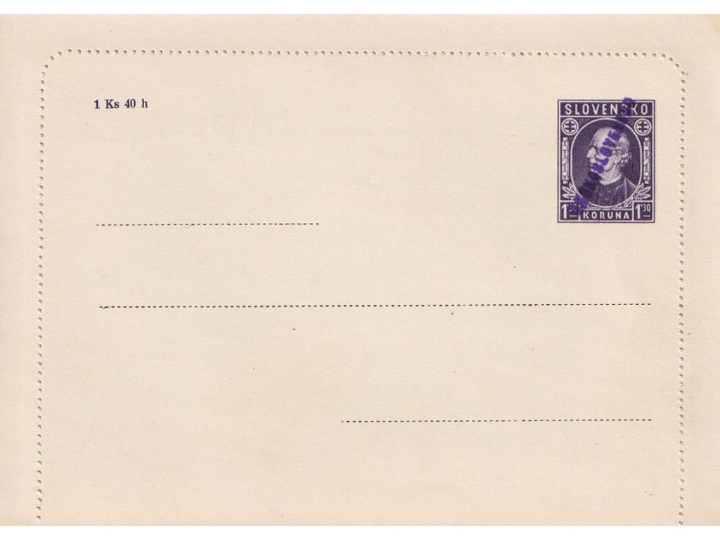 CZL 4 Hlinka s fialovým přetiskem ČESKOSLOVENSKO