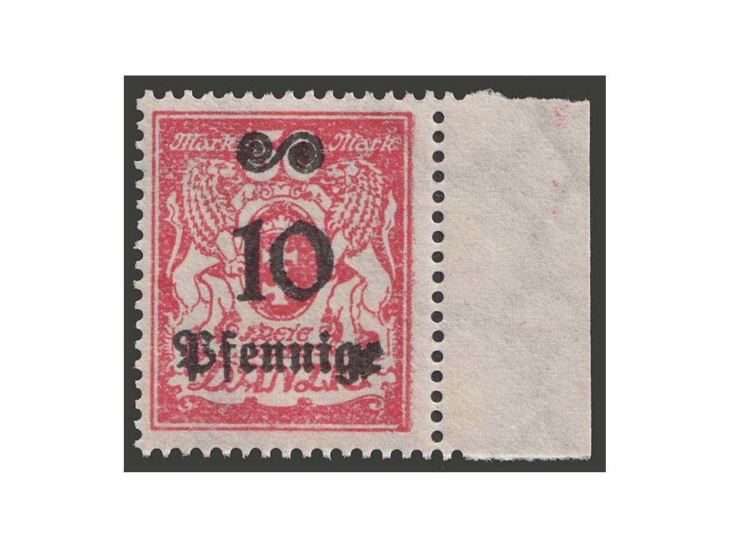 Poštovní známka, Danzig, 1923, 10Pf/50M obtisk přetisku na lepu, MiNr.182, **