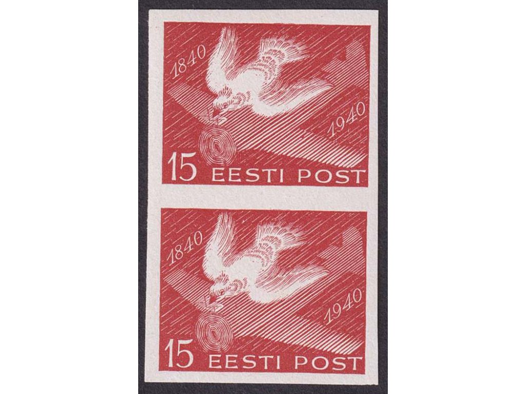 Poštovní známky, Eesti, 1940, 15 S Výročí známky, MiNr.162, ** , nezoubkovaná 2páska