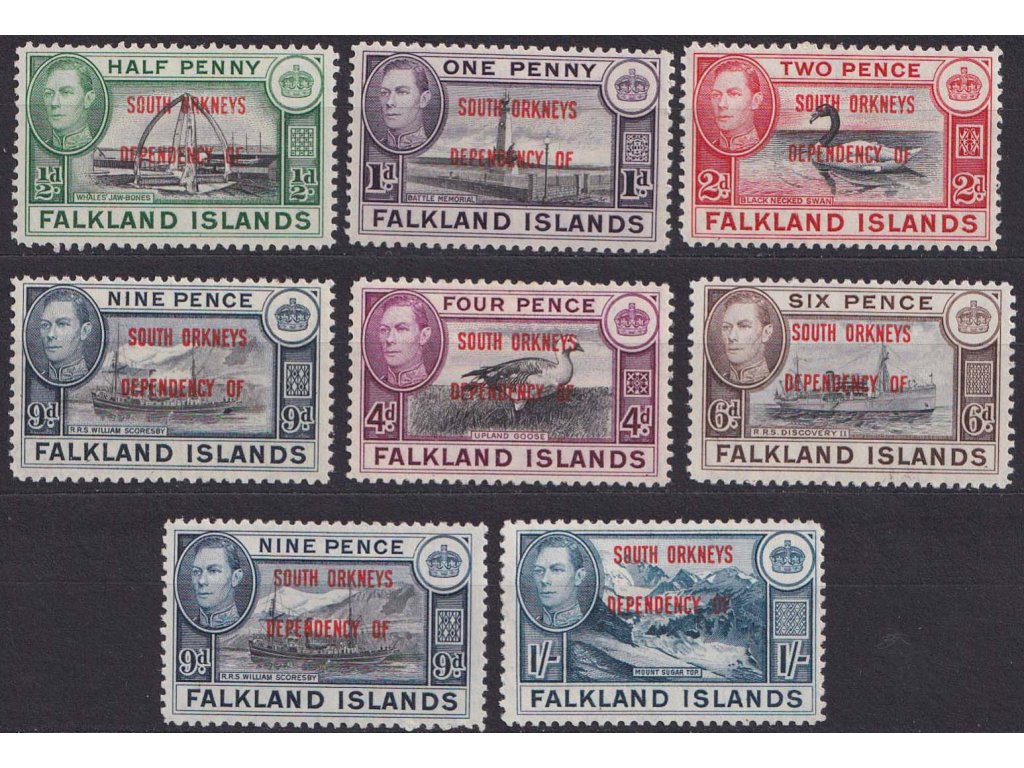 Falklandy, South Orkneys, 1944, 1/2P-1Sh série s přetiskem, MiNr.C1-8, *