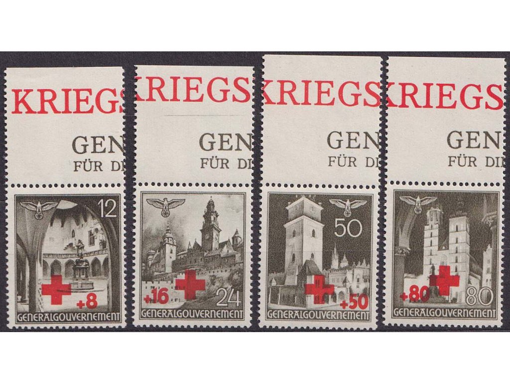 Poštovní známka, Generalgouwernement, 1940, 12-80 Gr série Červený kříž. MiNr.52-55, ** , krajové kusy