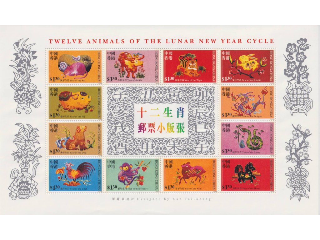 Poštovní známka, Hong Kong, 1999, 1.30 Dolaru aršík Znamení zvěrokruhu, MiNr.866-76, **