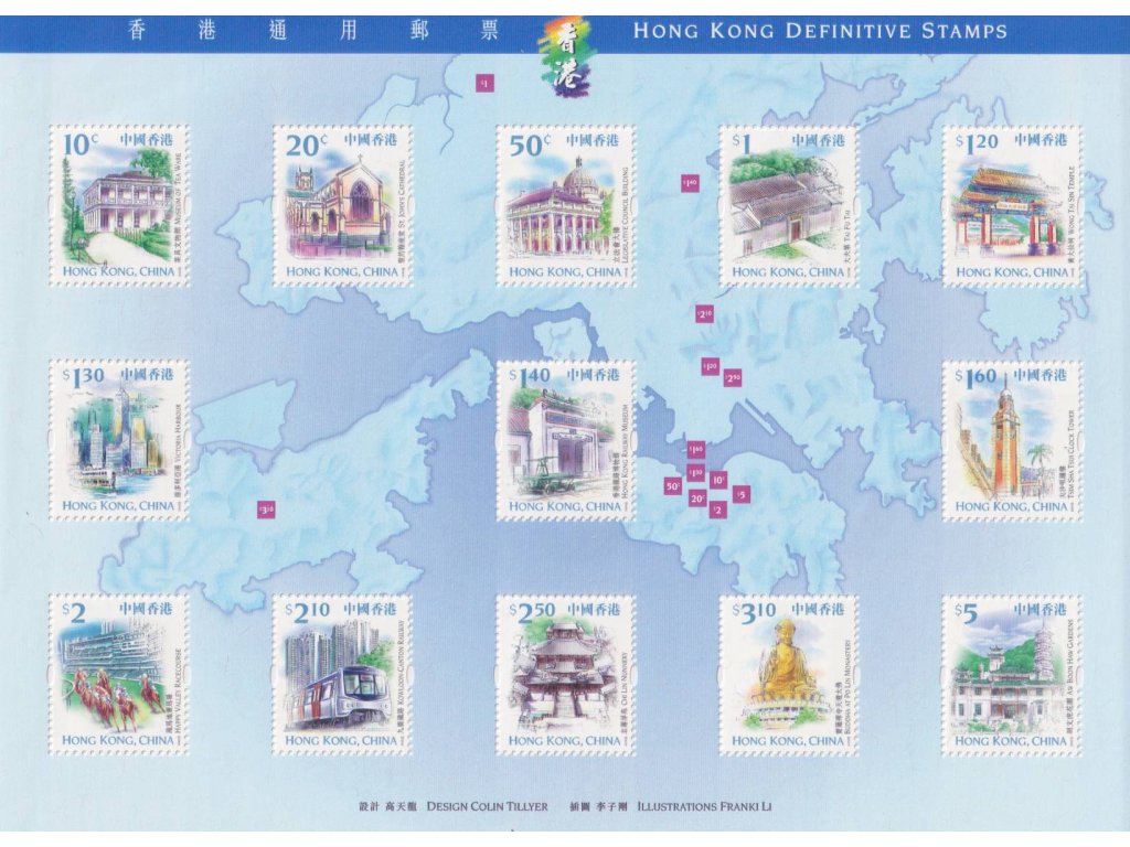 Poštovní známka, Hong Kong, 1999, 10C-5Dolarů aršík Stavby, MiNr.Bl.65, **