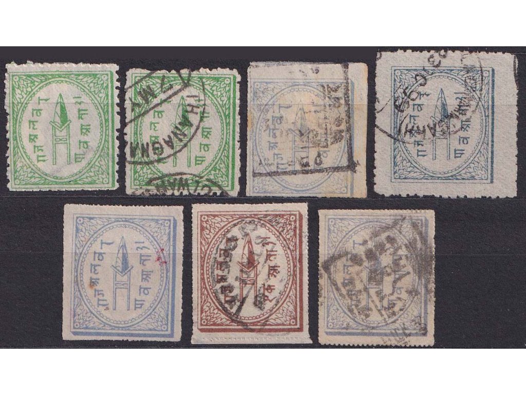Indie, Alwar, 1877/1901, 7 ks známek, hezká studijní sestava, razítkované/(*)