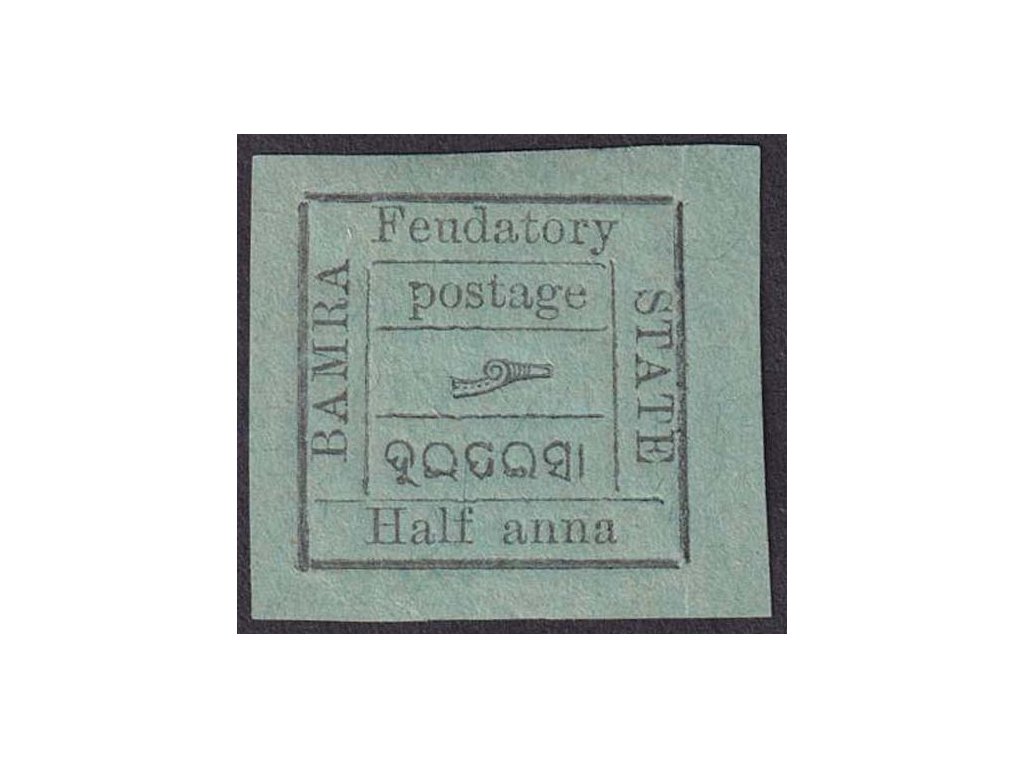 IIa, (*)Poštovní známka, Indie, Bamra, 1890, 1/2 A černá/zelená, MiNr.8IIa, (*)