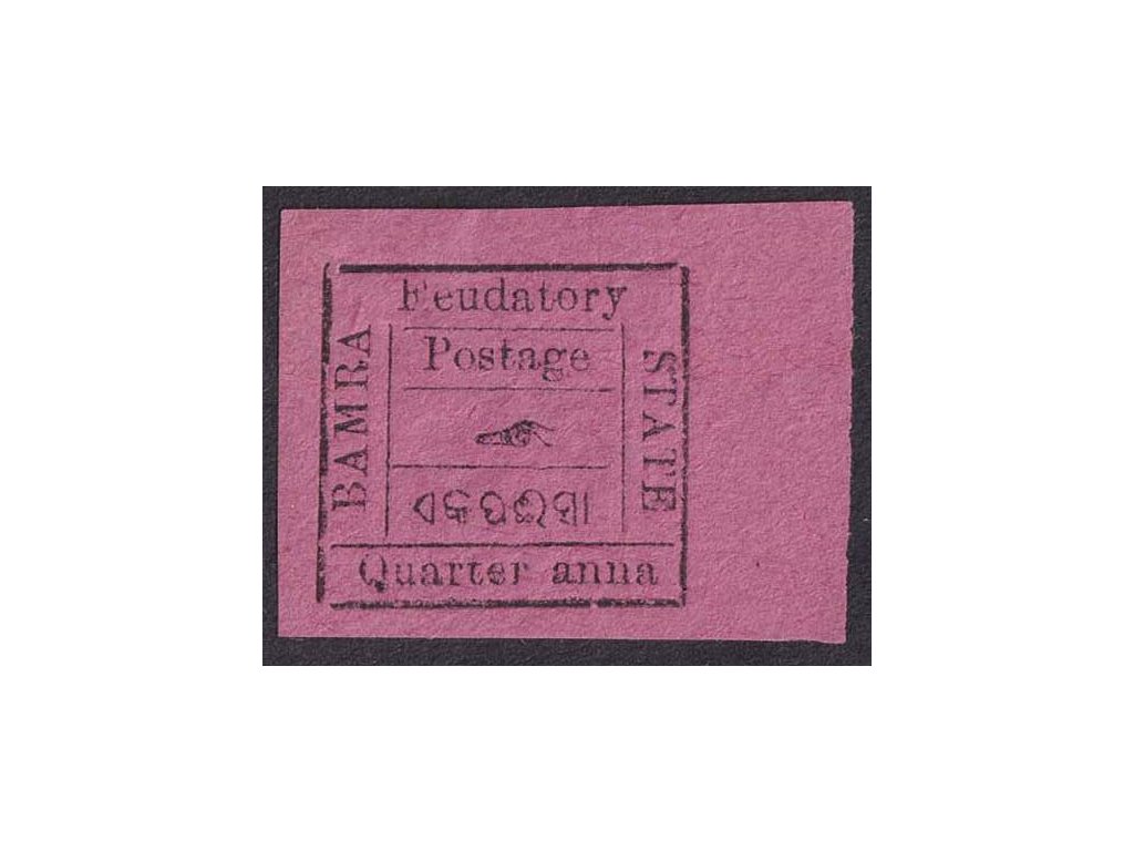 Poštovní známka, Indie, Bamra, 1890, 1/4 A černá/červená, MiNr.7c, (*)