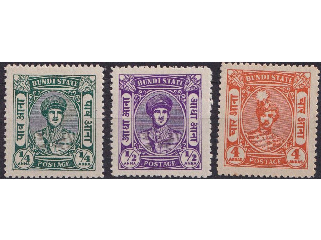 Indie, Bundi, 1947, 1/4 - 4 A Maharadža, MiNr.41,42,45, * po nálepce
