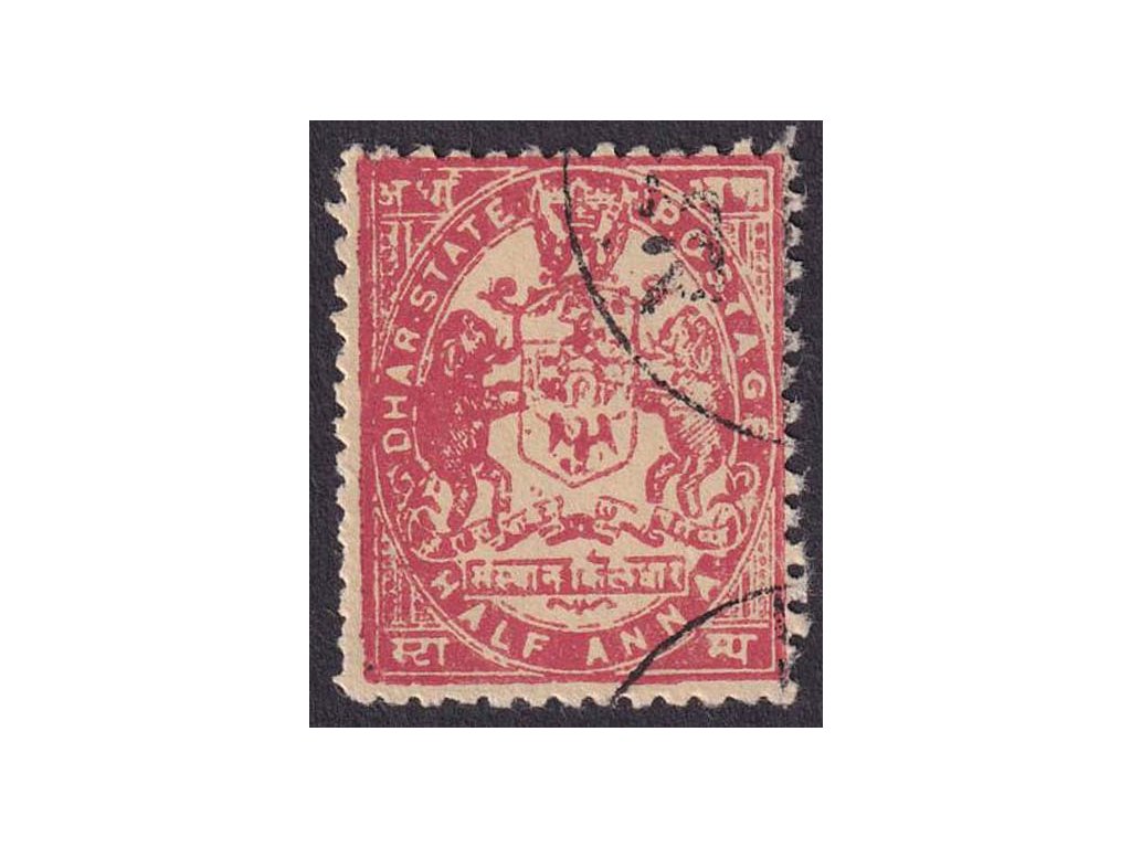 Poštovní známka, Indie, Dhar, 1898, 1/2 A Znak, MiNr.6b, razítkované