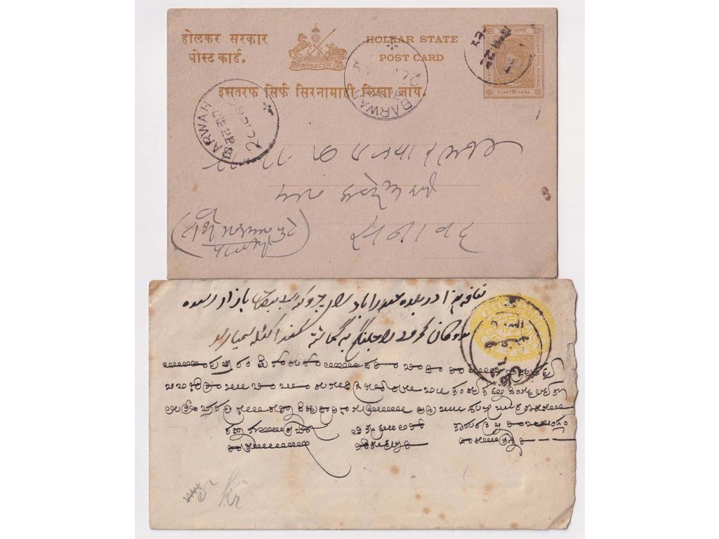Poštovní celistvosti, Indie, Holkar, Holkar, 2 kusy celistvostí, skutečně poštovně prošlé, kvalita - viz. foto