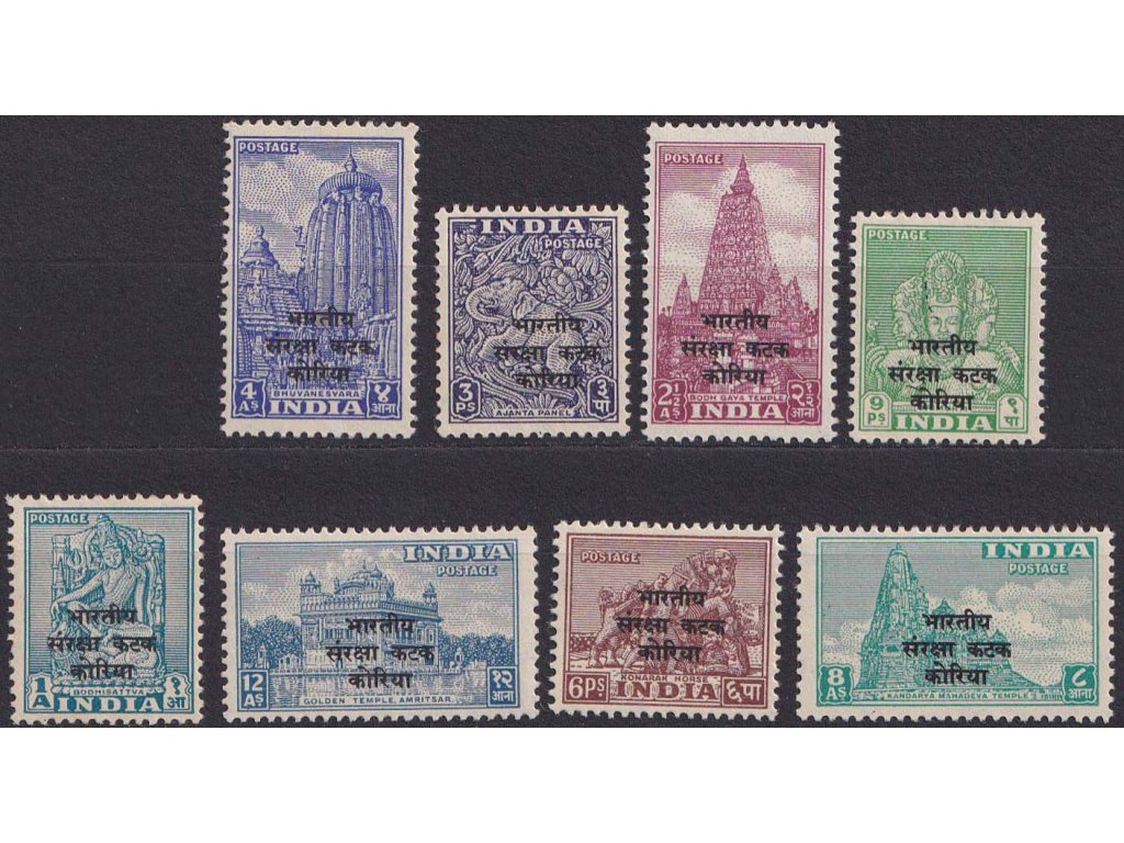 Poštovní známka, Indie, polní pošta v Korei, 1953, sestava zn. s přetiskem, **/*
