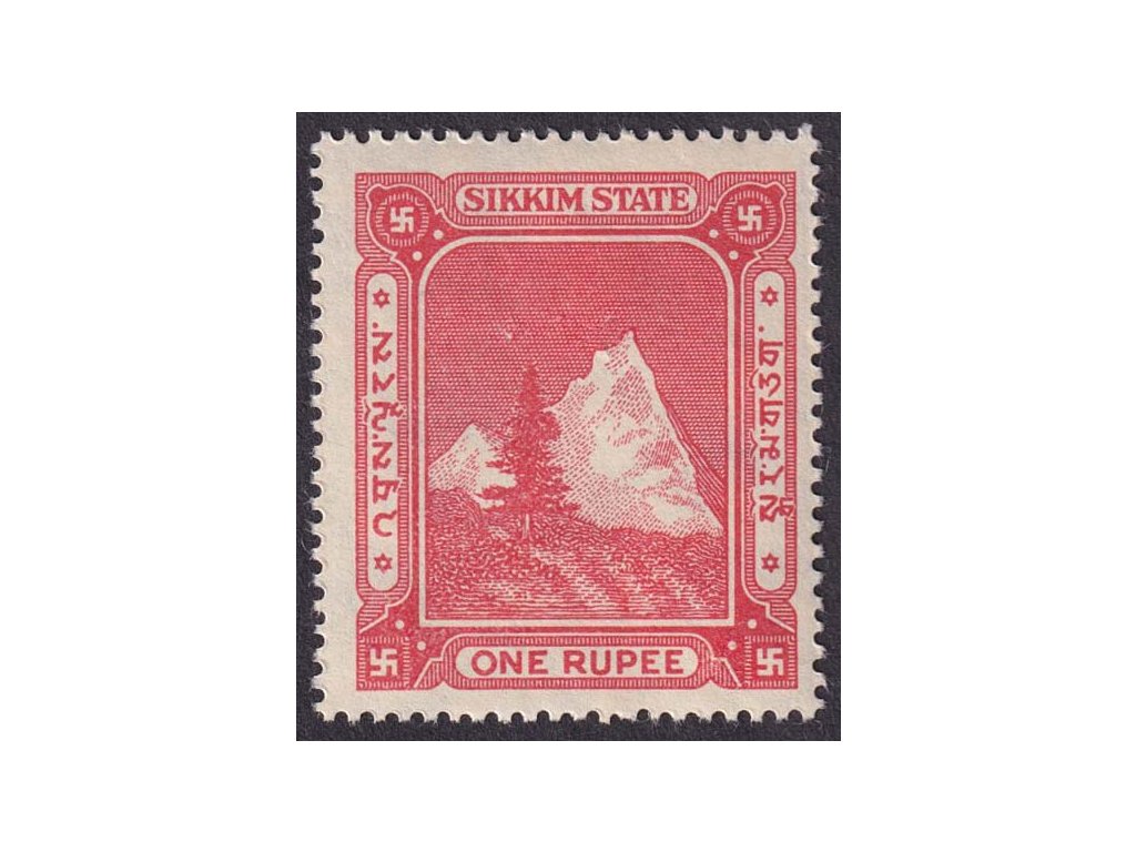 Poštovní známka, Indie, Sikkim, 1940/1950, 1 R Hory, **