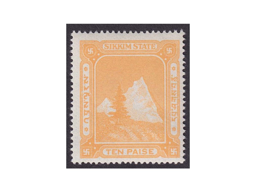 Poštovní známka, Indie, Sikkim, 1940/1950, 10 P Hory, **