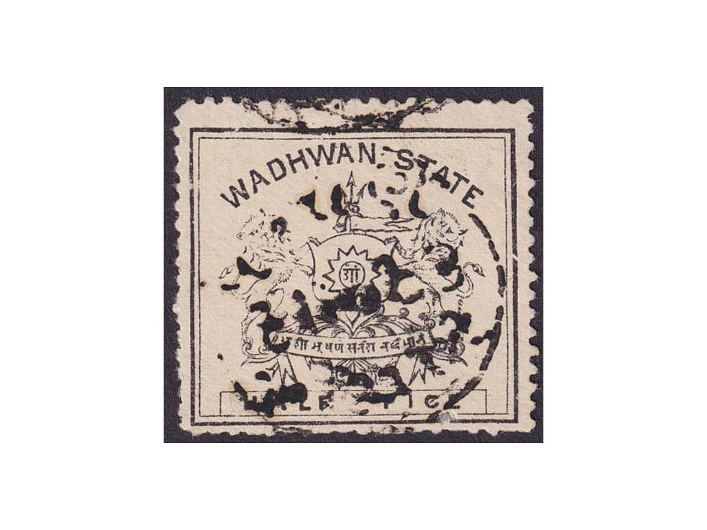 Poštovní známka, Indie, Wadhwan, 1888, 1/2 Pice Znak, MiNr.2, razítkované, zeslabeno