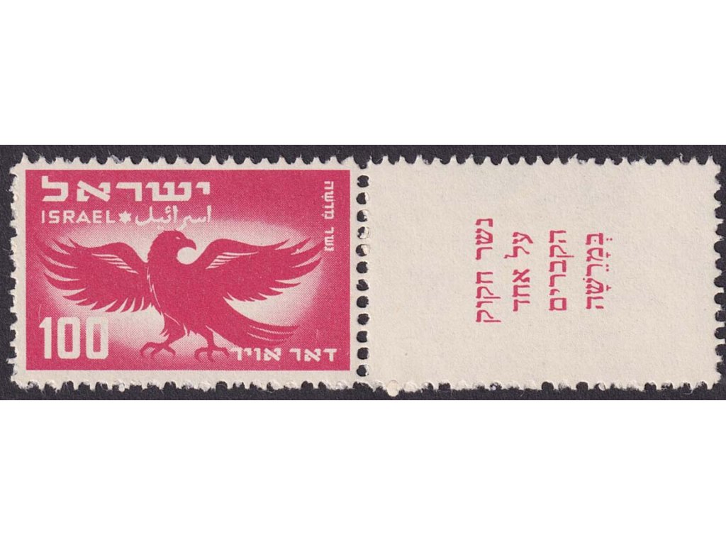 Poštovní známka, Israel, 1950, 100 Pr letecká s kuponem, MiNr.37, ** , Mi.200 Eur