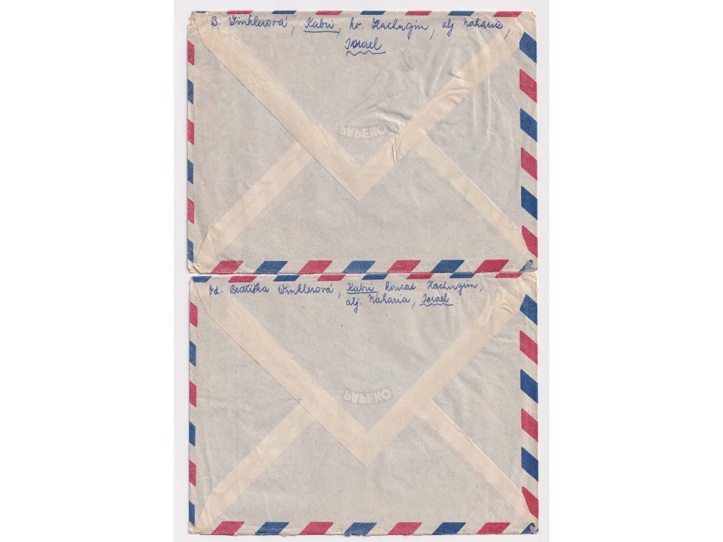 Israel, 1950, 2 kusy leteckých dopisů zaslaných roce 1950 do ČSR,