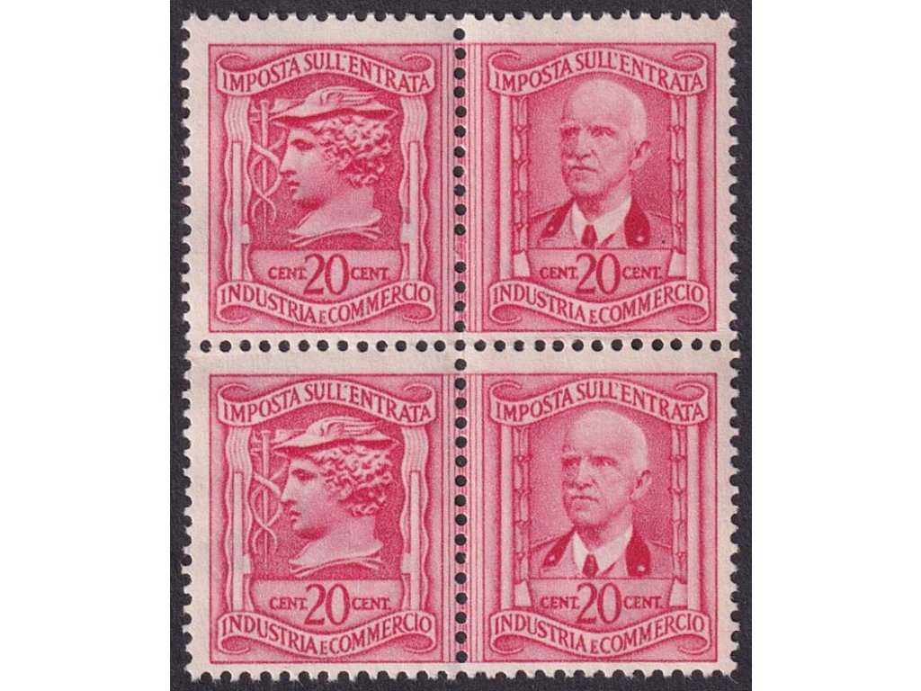 Kolky, Itálie, 1940, 20 C Daň ze vstupu (Imposta sull'entrata), 4blok, **