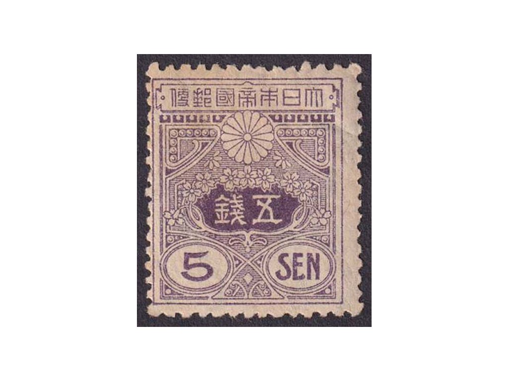Poštovní známka, Japonsko, 1914, 5 S Znak, MiNr.116, * po nálepce, drobné archové lomy