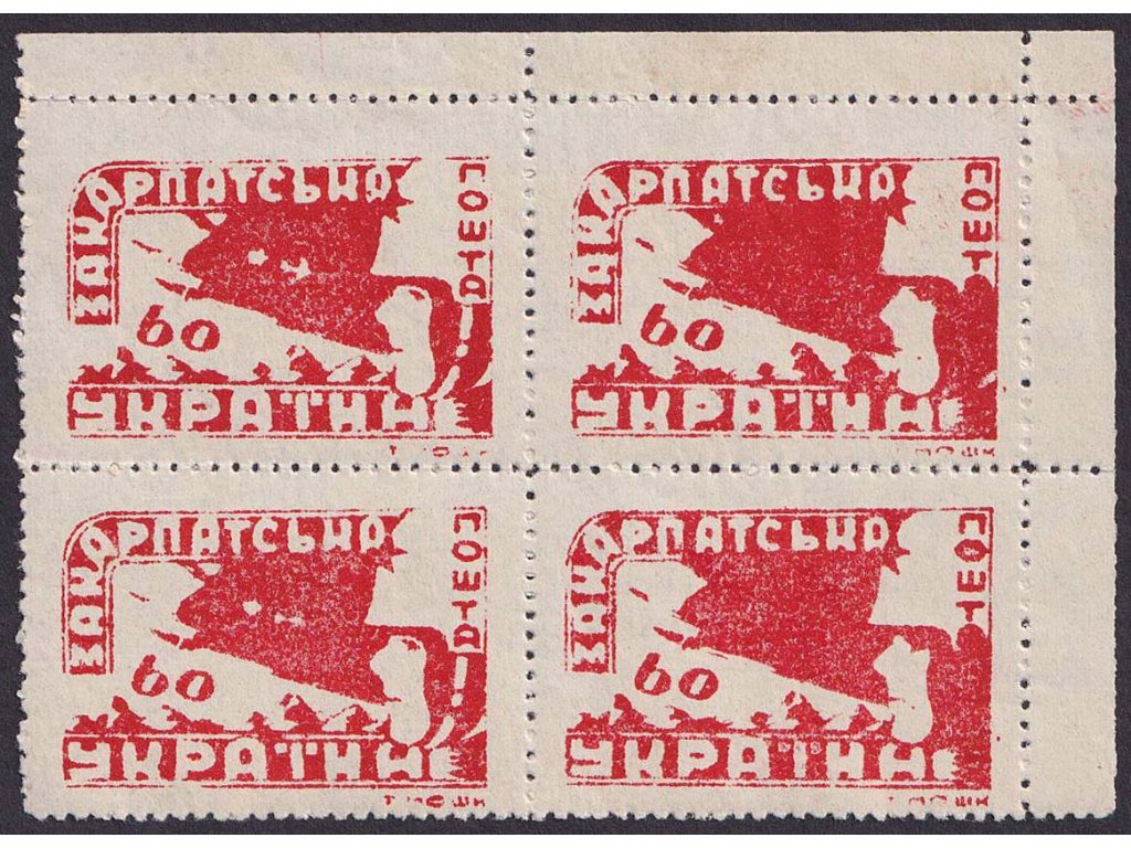 Karpatská Ukrajina, 1945, 60 F Voják, 4blok, MiNr.78A, ** - viz. foto