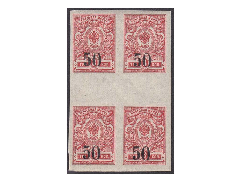 Poštovní známka, Koltschak-Armee, 1919, 50K/3K Znak, 4blok s meziaršími, MiNr.2B, **